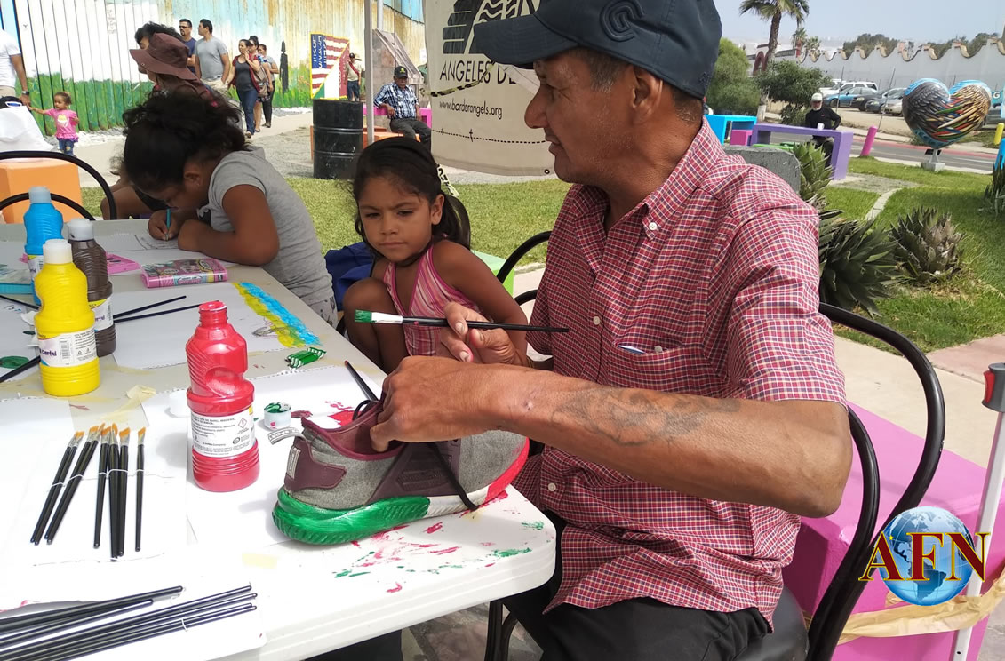 TIJUANA BC 15 DE SEPTIEMBRE DE 2018 (AFN).- Como parte de una actividad impulsada por jóvenes del Grupo Ángeles de la Frontera, apoyados por estudiantes universitarios, se estimuló a varias personas que se reencontraron con familiares que viven en Estados Unidos en el muro fronterizo de Playas de Tijuana, para que expresaron sus sentimientos a través de la pintura.