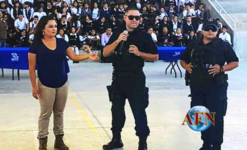 TIJUANA BC 18 DE SEPTIEMBRE DE 2018 (AFN).- Para que los jóvenes estudiantes eviten la apología del delito y conozcan sobre qué es verdaderamente una vida encaminada al éxito en base a estudio y trabajo, la Policía Estatal Preventiva (PEP) a través de la coordinación de atención social impartió en el plantel del CBTIS 277 en Valle de las Palmas la plática preventiva denominada "Peligro de la Narcocultura".