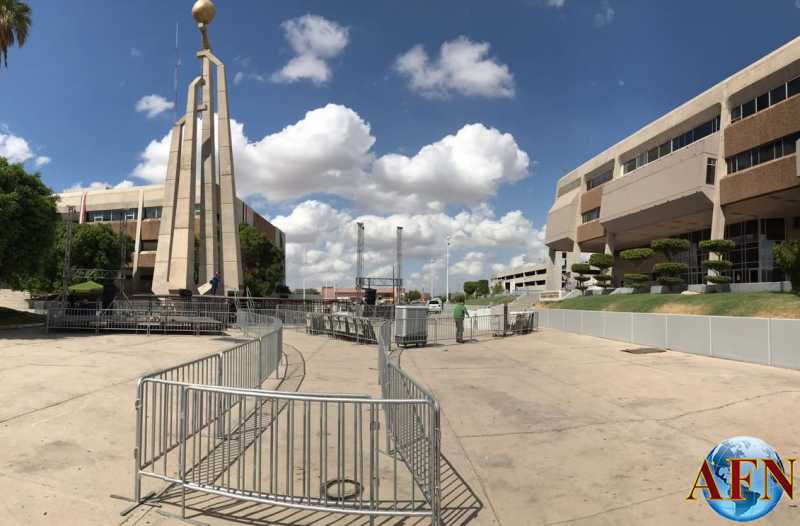 MEXICALI BC A 20 DE SEPTIEMBRE DEL 2018 (AFN).- Con vallas de metal y un escenario junto al Monumento al Sol, se encuentra personal de Morena realizando los últimos detalles para el mitin de Andrés Manuel López Obrador, quien en punto de las 17:00 horas visitará la capital de Baja California como parte de su gira del agradecimiento.