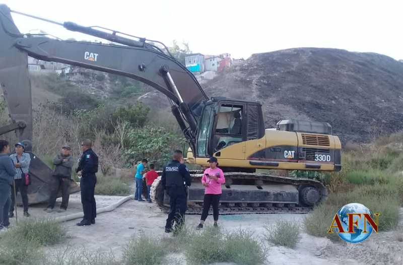 Los residentes manifestaron su molestia porque la máquina causó daños a la tubería flexible de aguas negras que utilizan ellos, ya afectados por movimientos anteriores.