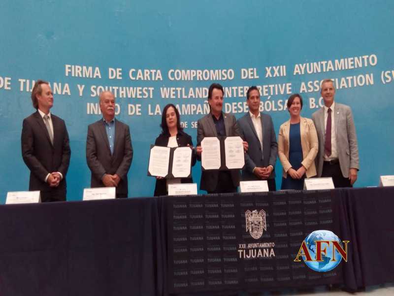 TIJUANA BC 28 DE SEPTIEMBRE DE 2018 (AFN).- Este día, el Ayuntamiento de Tijuana y la Southwest Wetlands Interpretive Association (SWIA), firmaron una carta compromiso para disminuir la proliferación de desechos de plástico en la cuenca del Río Tijuana.