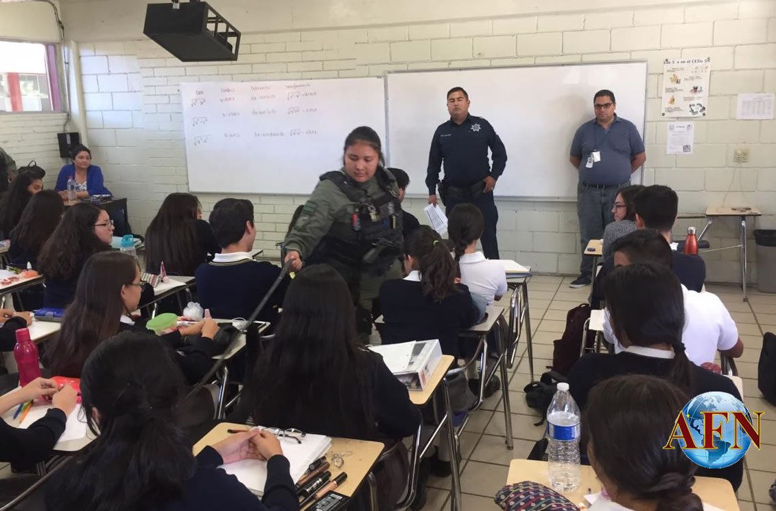 TIJUANA BC 18 DE OCTUBRE DE 2018 (AFN).- Elementos de la Policía Municipal realizaron una “visita sorpresa”, atendiendo el programa “Mochila Segura” en las instalaciones de una preparatoria localizada en la Mesa de Otay, de la delegación Centenario.