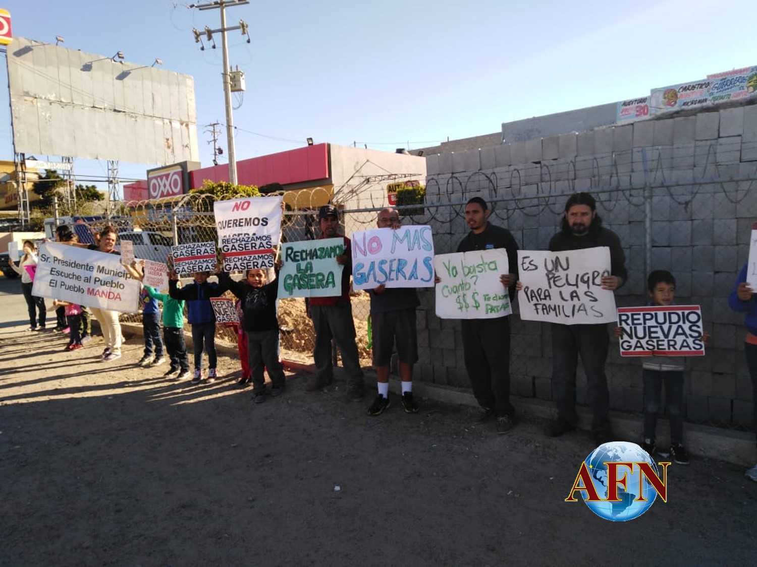 TIJUANA BC 19 DE OCTUBRE DE 2018 (AFN).- Vecinos de la colonia El Rubí se manifiestan en contra de la construcción de una estación de gas LP, a un costado de viviendas comercios y frente un centro de salud.