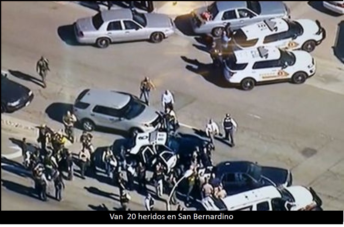 SAN BERNARDINO CA 2 DE DICIEMBRE DE 2015 (La Silla Rota).- Luego de que se supiera del tiroteo en San Bernardino, California, Estados Unidos, ha trascendido la versión de que podría tratarse de un ataque terrorista, pues se habla de más de tres tiradores.