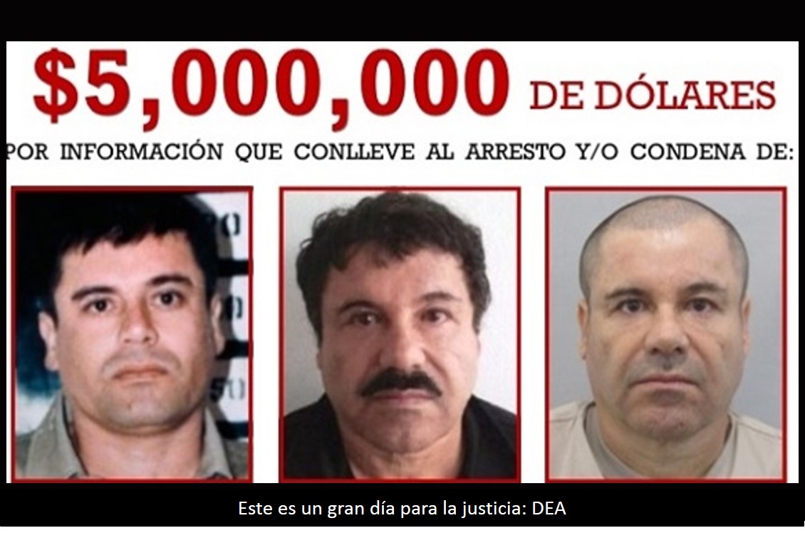 MÉXICO DF 8 DE ENERO DE 2016 (La Silla Rota).- La Administración Federal Antidrogas de Estados Unidos (DEA), se congratuló de la recaptura del líder del cártel de Sinaloa, Joaquín “El Chapo” Guzmán Loera.