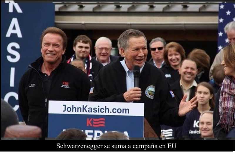 MEXICO DF 7 DE MARZO DE 2016 (SDPnoticias).- El actor Arnold Schwarzenegger se sumó a la campaña del gobernador de Ohio John Kasich por la candidatura del Partido Republicano a la Casa Blanca.