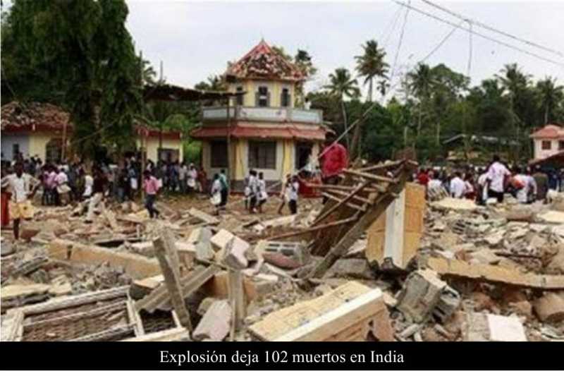 INDIA 10 DE ABRIL DE 2016 (La Silla Rota).- Una potente explosión accidental de pirotecnia causó la muerte de al menos 102 personas en un templo del sur de India.