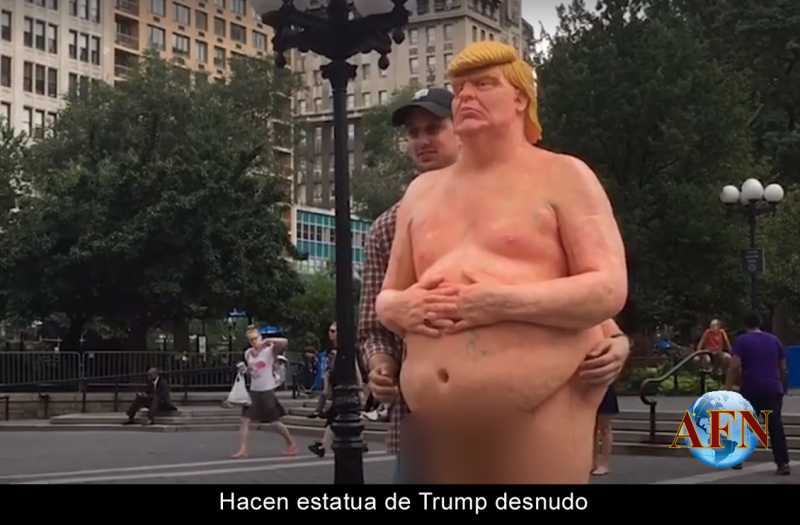 ESTADOS UNIDOS 18 DE AGOSTO DE 2016 (AFN).- Una estatua de Donald Trump desnudo apareció esta mañana en pleno centro de Nueva York, bajo el título “El emperador no tiene bolas”.