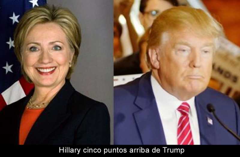 NUEVA YORK 7 SEPTIEMBRE DE 2016.- La candidata presidencial demócrata Hillary Clinton aventaja por cinco puntos porcentuales a su rival, el republicano Donald Trump, en las preferencias de votos de los electores de Estados Unidos, de acuerdo con un sondeo difundido este viernes.