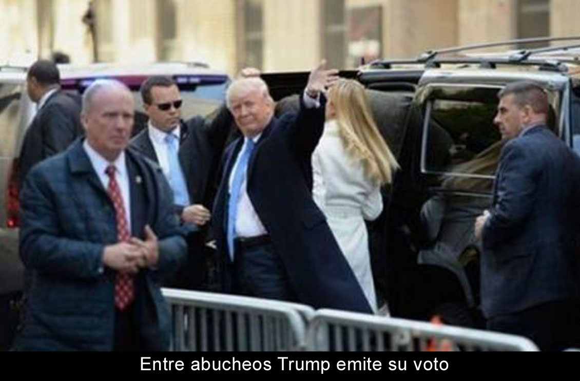 MÉXICO 8 DE NOVIEMBRE DE 2016 (La Silla Rota).- El candidato republicano a la presidencia de Estados Unidos, Donald Trump y su esposa Melania, llegaron al colegio electoral en el PS 59 en Midtown Manhattan, para emitir su voto, donde fueron recibidos con abucheos.