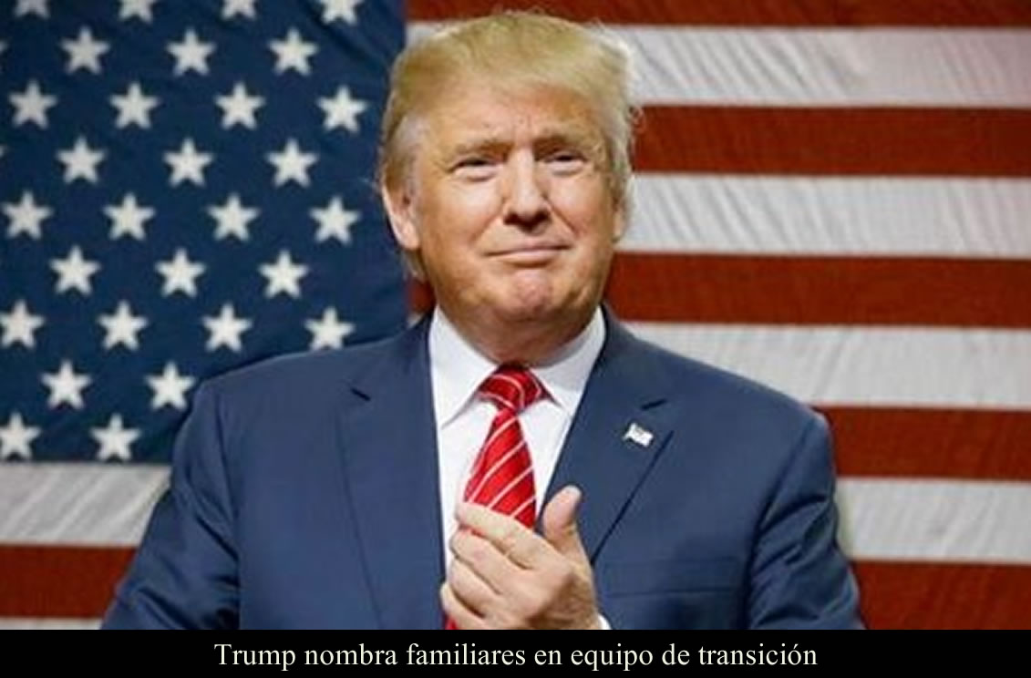 NUEVA YORK 12 DE NOVIEMBRE DE 2016 (LA SILLA ROTA).- El mandatario electo Donald Trump nombró este viernes a tres de sus hijos para formar parte de su comité de transición, que será encabezado por el vicepresidente electo Mike Pence, en sustitución del gobernador de Nueva Jersey, Chris Christie.