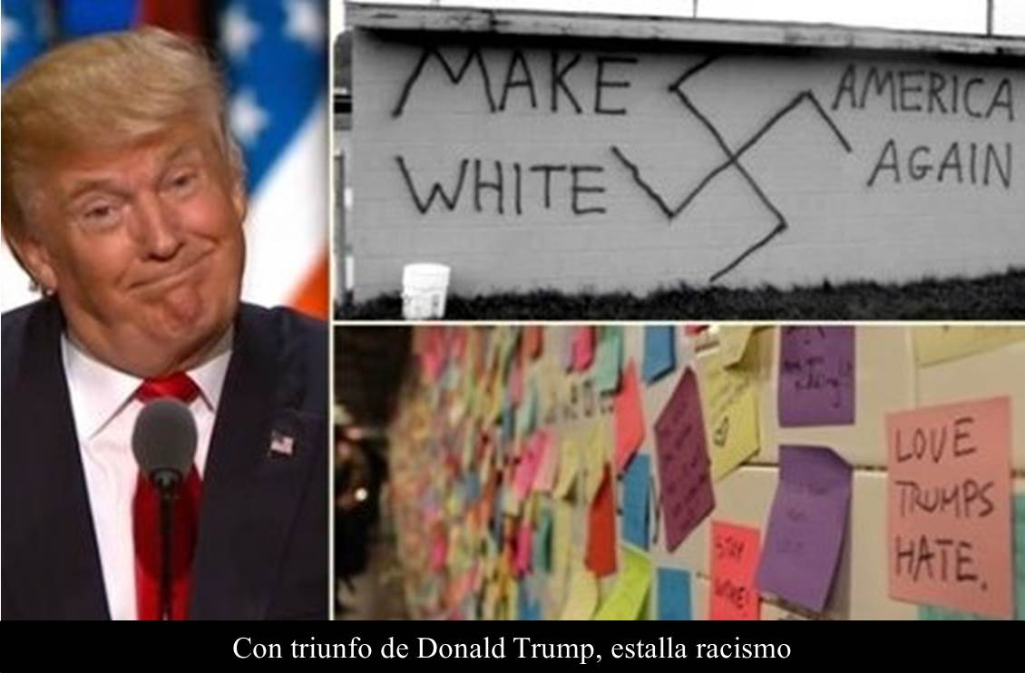 ESTADOS UNIDOS 20 DE NOVIEMBRE DE 2016 (La Silla Rota).- Al menos 300 incidentes raciales o discriminatorios han sido reportados en Estados Unidos desde el triunfo de Donald Trump en las elecciones del 8 de noviembre, de acuerdo con el Centro Legal sobre la Pobreza en el Sur (SPLC).
