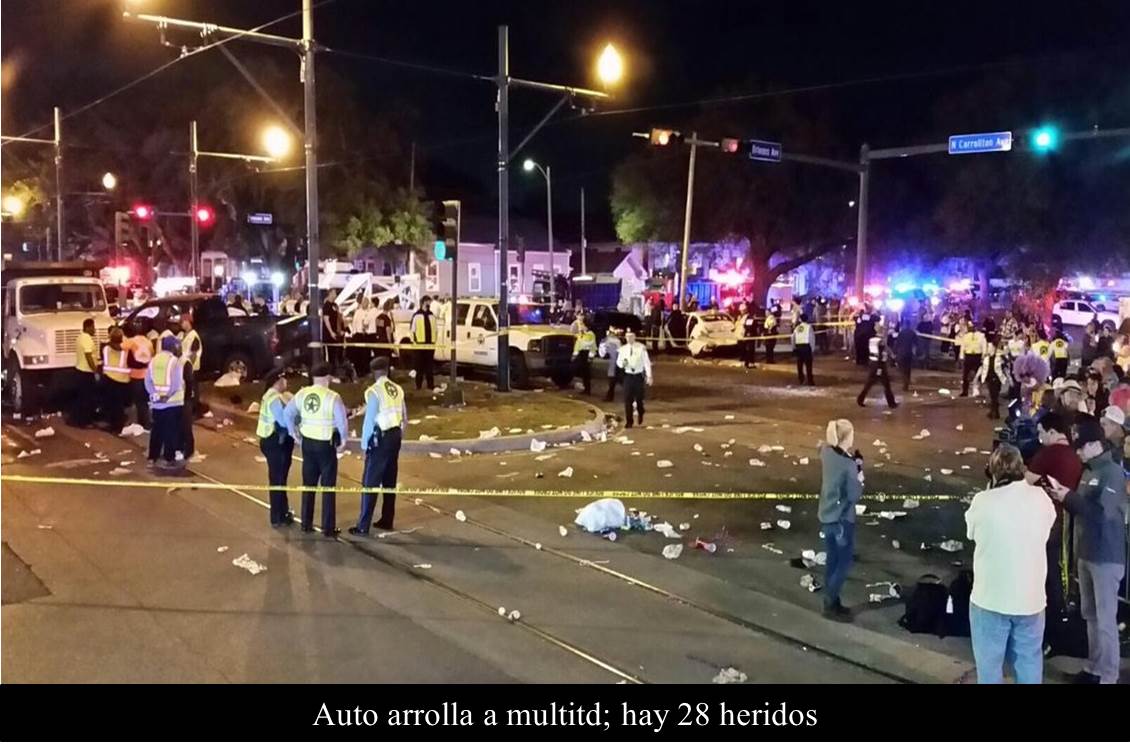 ESTADOS UNIDOS 26 DE FEBRERO DE 2017 (La Silla Rota).- Este sábado un vehículo se impactó contra un grupo de personas que observaba el desfile Krewe of Endymion en Nueva Orleans.
