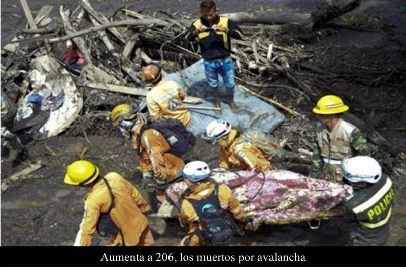 COLOMBIA 2 ABRIL DE 217 (La Silla Rota).- La cifra de muertos por la avalancha que hoy afectó la ciudad de Mocoa, departamento colombiano de Putumayo, supera ya los 200, mientras el gobierno local decretó emergencia sanitaria.