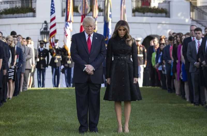 En el decimosexto aniversario de los ataques, el primero de Trump en la Casa Blanca, el mandatario y su esposa participaron en el momento de silencio acompañados por parte del personal de la residencia presidencial.