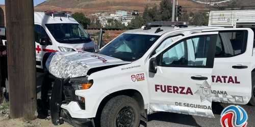 TECATE BC 18 DE DICIEMBRE DE 2025 (AFN).- Una patrulla de la Fuerza Estatal de Seguridad Ciudadana (FESC) chocó la mañana de este jueves con un vehículo ...