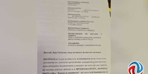 MEXICALI BC 18 DE FEBRERO DE 2026 (AFN).- El Tribunal de Justicia Electoral de Baja California declaró como inexistente la ...