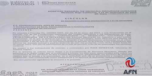 MEXICALI BC 11 DE DICIEMBRE DE 2025 (AFN).- En un oficio con fecha de este jueves 11 de diciembre, director del Hospital General ...