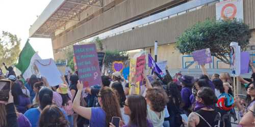 TIJUANA BC 8 DE MARZO DE 2026 (AFN).- Como parte de la manifestación no exenta de disturbios y algunos destrozos que han provocado a su paso por calles de la ...