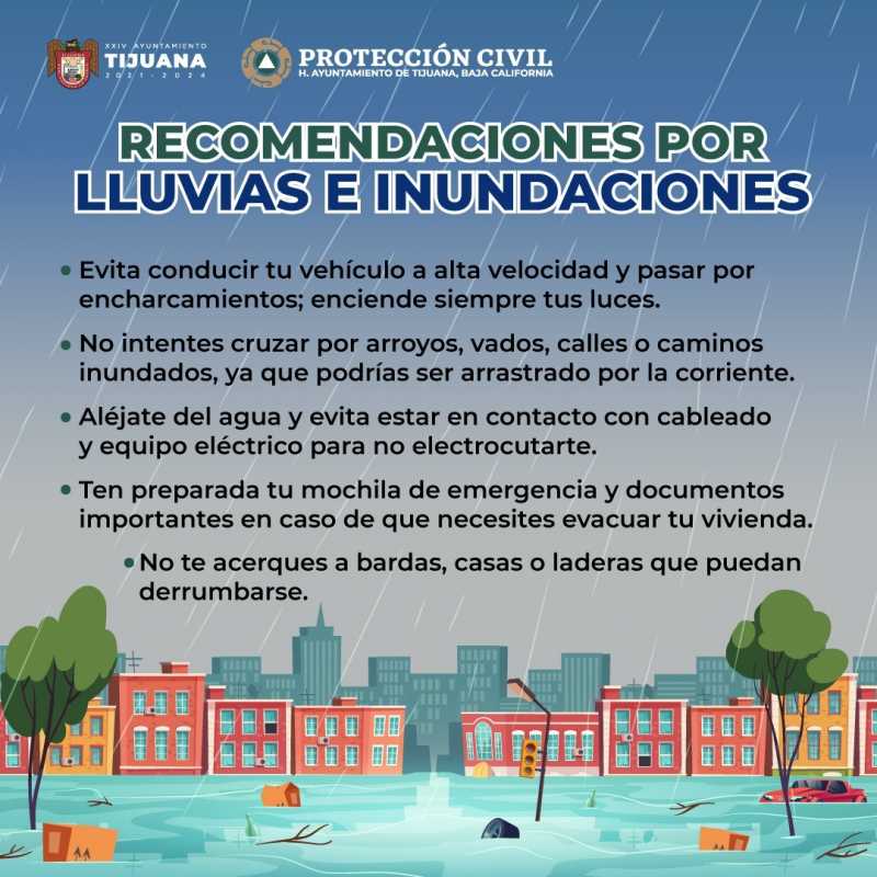 TIJUANA BC 2 DE ENERO DE 2024 (AFN).- A partir del miércoles 3 de enero se registrarán lluvias y chubascos, además de un notable descenso en la temperatura y vientos del Oeste de 25 a 40 kilómetros por hora, según informó la Dirección de Protección Civil Tijuana.