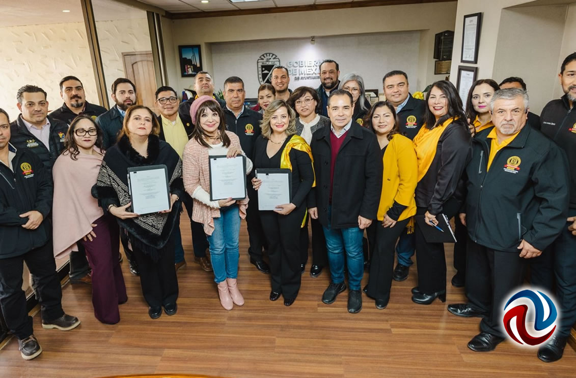MEXICALI BC 7 DE ENERO DE 2025 (AFN).- La presidenta municipal de Mexicali Norma Bustamante Martínez, firmó un nuevo contrato colectivo con el Sindicato Único de Trabajadores al Servicio de los Poderes del Estado, Municipios e Instituciones Descentralizadas de Baja California (S.U.T.S.P.E.M.I.D.B.C.), asegurando mejores condiciones laborales para los dos mil 810 trabajadores municipales en este 2025.