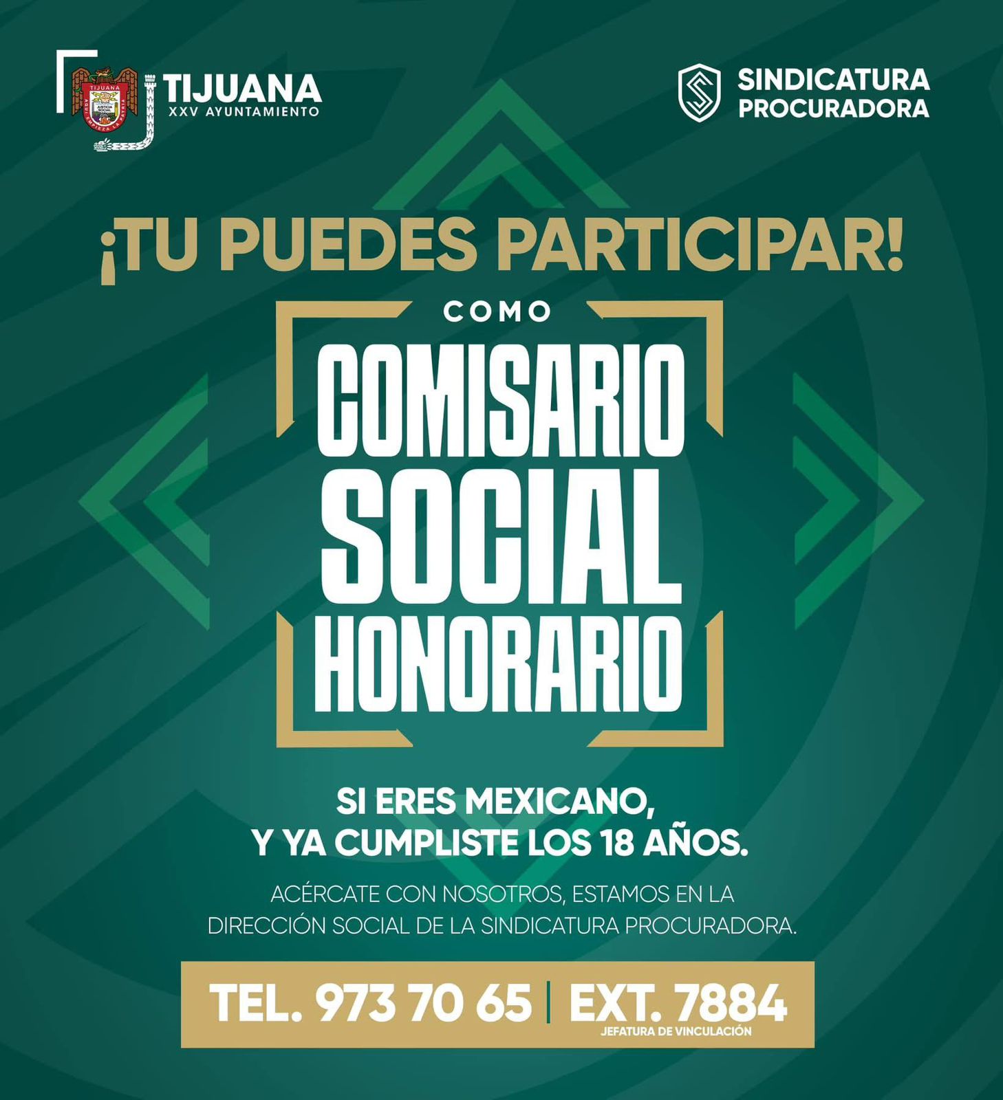TIJUANA BC 17 DE ENERO DE 2025 (AFN).- La Sindicatura Procuradora de Tijuana lanzó este viernes la convocatoria para aspirantes a ser Comisarios Sociales Honorarios 2025.