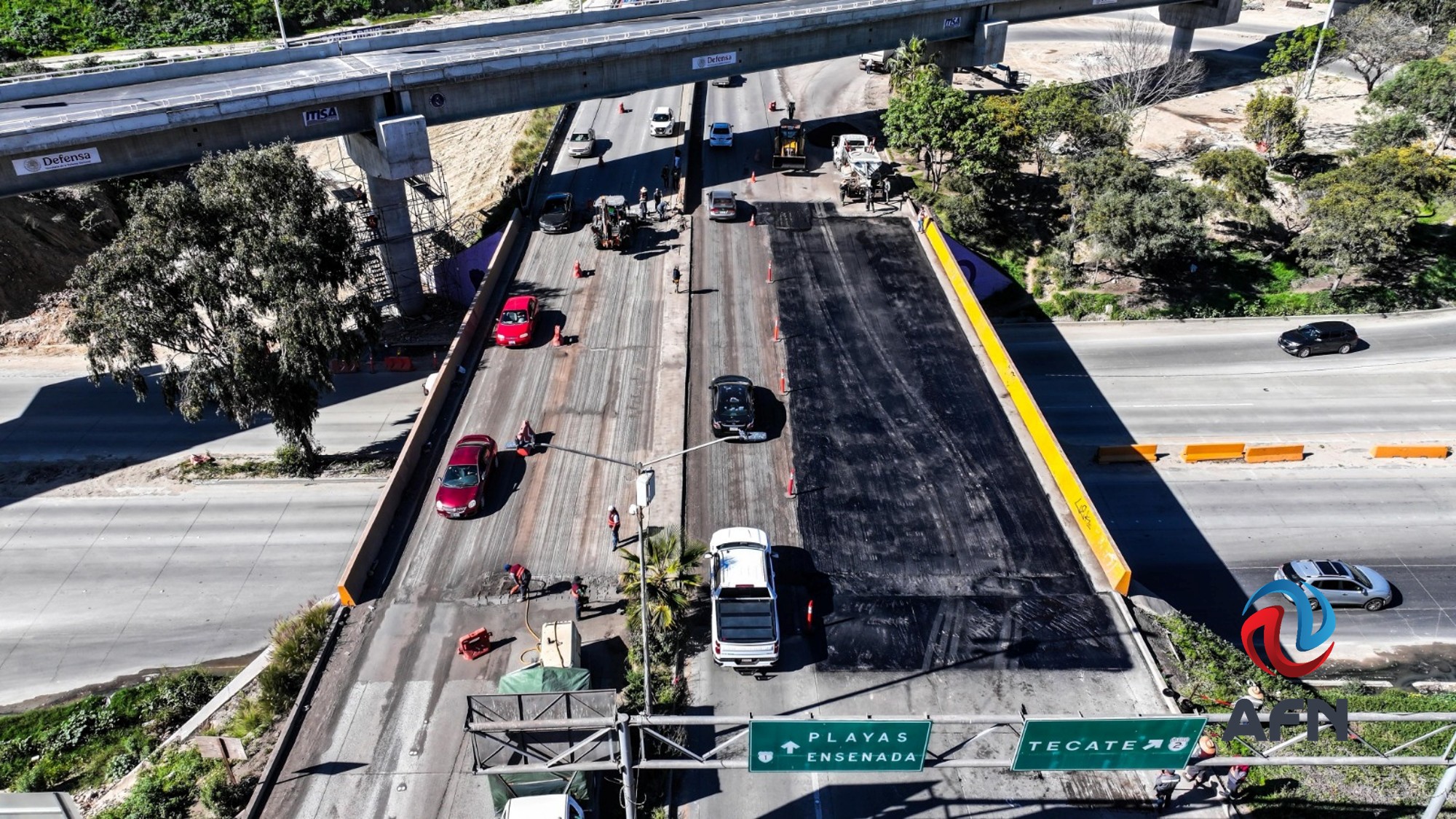 TIJUANA BC 27 DE ENERO DE 2026 (AFN).- El ayuntamiento de Tijuana lleva a cabo trabajos de reencarpetado de la carpeta asfáltica en el puente del Nodo Independencia, en beneficio directo a más de 50 mil automovilistas que transitan por la zona, los cuales se prevé concluyan este miércoles 28 de enero.