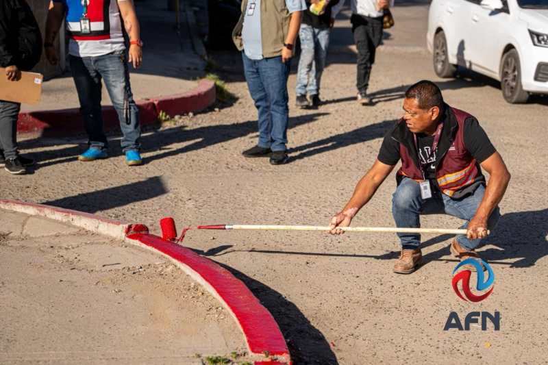 Iniciaron las acciones de repintado de topes, balizamiento, cambio de lámparas de alumbrado público a tecnología LED, y poda de árboles, en la colonia Fovissste 5, de la Delegación Otay Centenario, con un impacto para estudiantes y docentes de la Escuela Primaria Quetzalcóatl.
