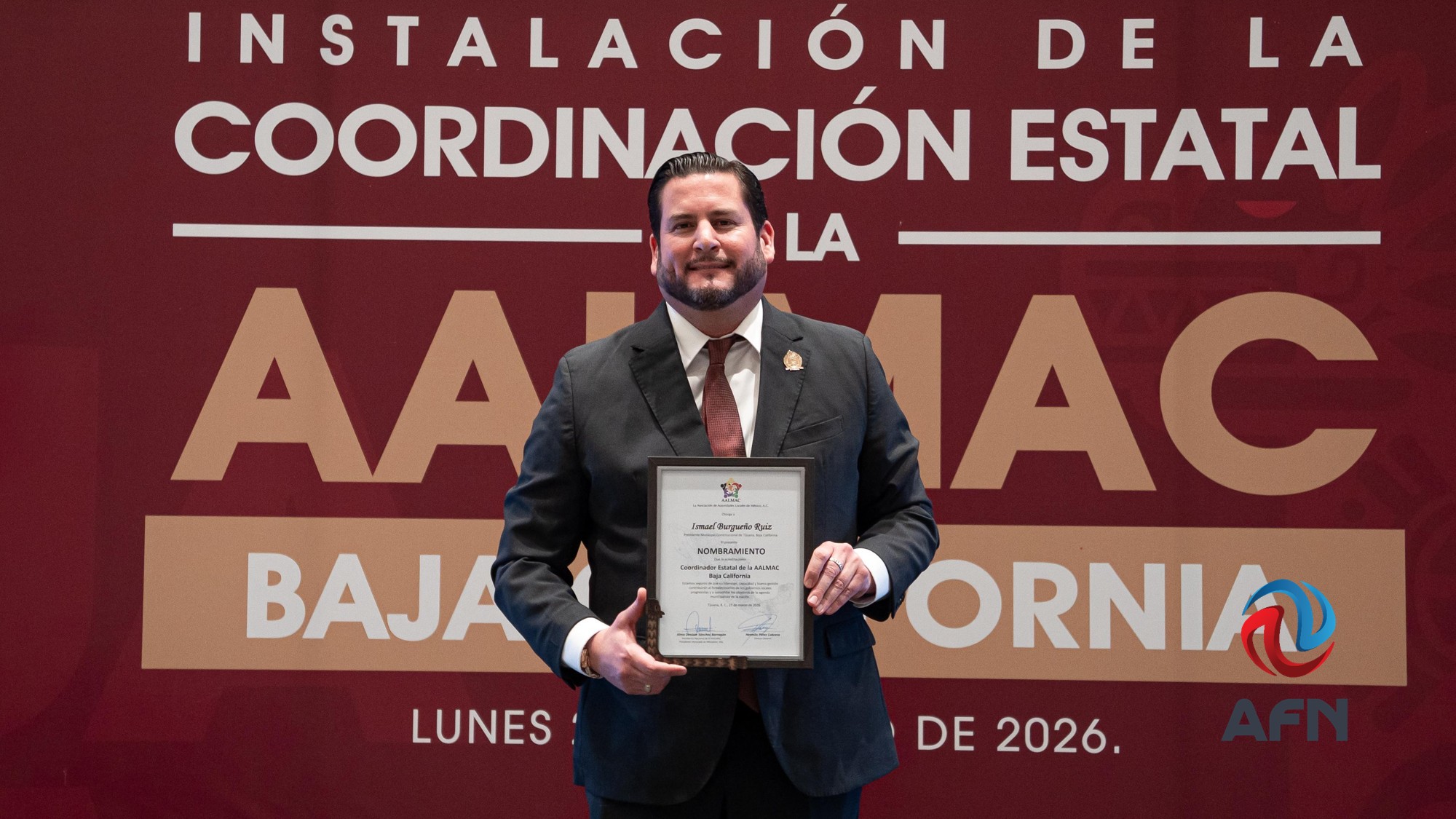 TIJUANA BC 23 DE MARZO DE 2026 (AFN).- El presidente municipal de Tijuana, Ismael Burgueño Ruiz, asumió este lunes la coordinación estatal de la Asociación de Autoridades Locales de México A.C. (AALMAC) en Baja California, con el propósito de fortalecer la colaboración entre municipios y promover el desarrollo regional.