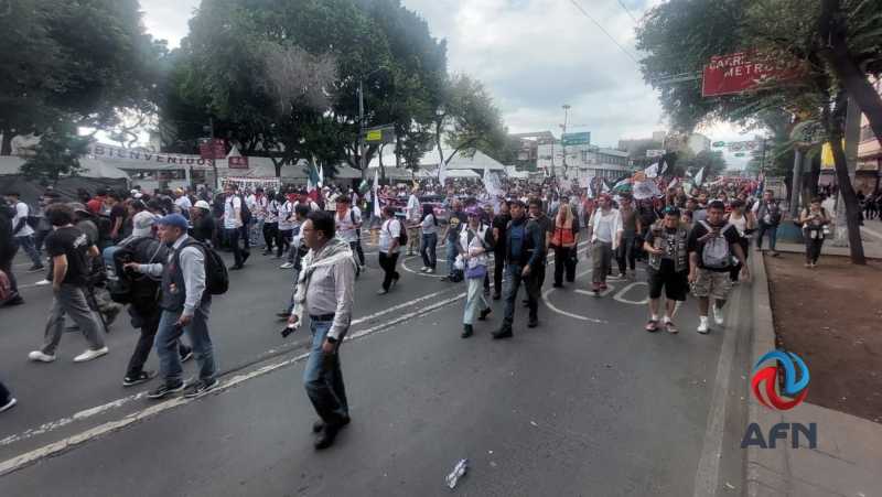 Algunas de las personas que acompañaron la manifestación, robaron coladeras de las calles por las cuales transitaron, y al llegar al Zócalo realizaron un mitin.