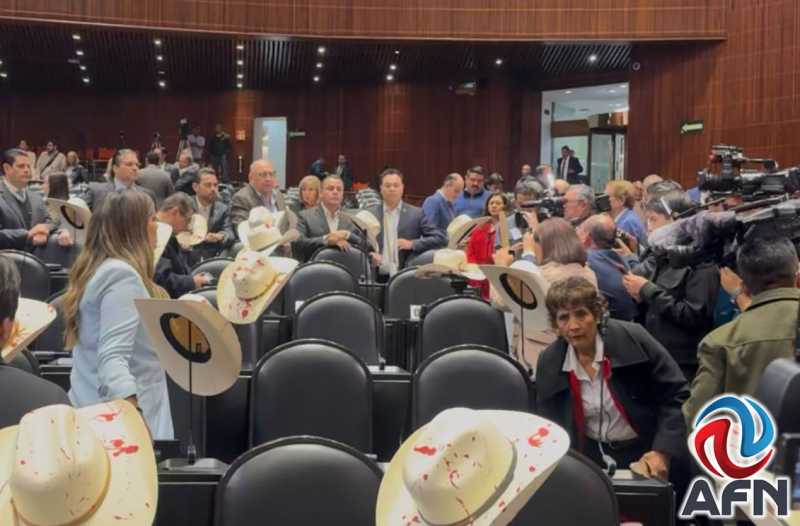 Durante la sesión, los diputados del PRI se colocaron sombreros tejanos pintados de rojo en alusión, según explicaron, a la sangre derramada por el fallecido alcalde; el gesto simbólico acompañó el minuto de silencio guardado en memoria de Carlos Manzo, así como los pronunciamientos de denuncia hacia lo que denominaron “omisión gubernamental” ante la violencia organizada.