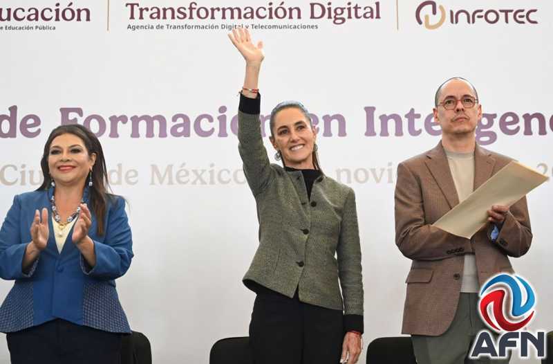 CIUDAD DE MÉXICO CDMX 6 DE NOVIEMBRE DE 2025 (AFN).- Con el objetivo de consolidar su proyecto de gobierno y fomentar que cada vez más jóvenes se integren al desarrollo de nuevas tecnologías, la presidenta Claudia Sheinbaum encabezó este jueves en el Tecnológico de Tláhuac el lanzamiento oficial del Centro Público de Formación en Inteligencia Artificial.