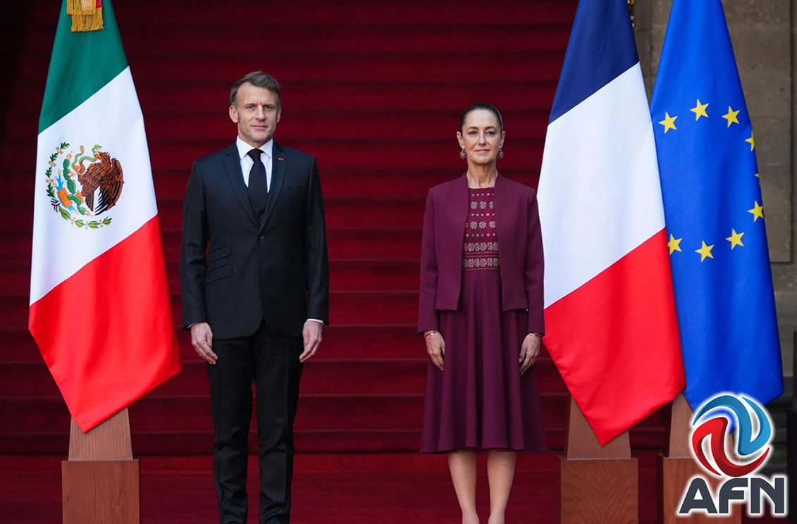 CIUDAD DE MÉXICO CDMX 7 DE NOVIEMBRE DE 2025 (AFN).- La presidenta Claudia Sheinbaum Pardo recibió en Palacio Nacional a su homólogo de la República Francesa, Emmanuel Macron.