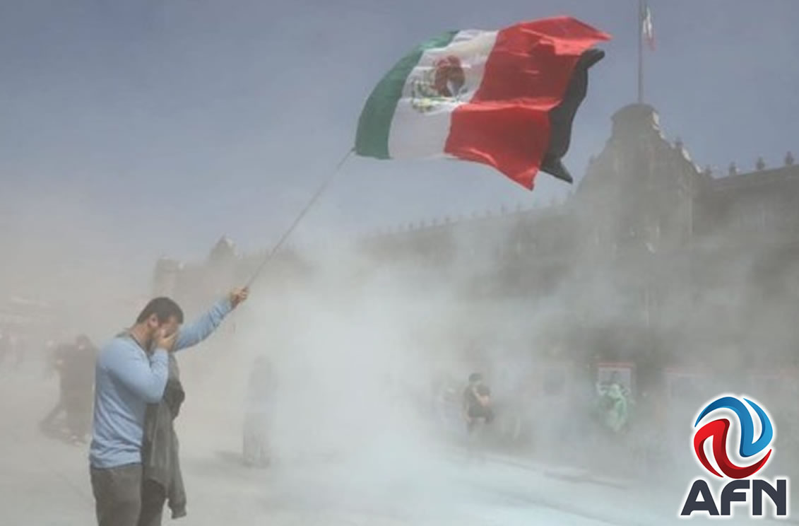 A su llegada al zócalo capitalino un contingente conformado principalmente por hombres con el rostro cubierto, lograron derribar algunas vallas que rodean Palacio Nacional, donde ya se encontraban elementos de seguridad quienes lanzaron gases lacrimógenos para replegar a los manifestantes.