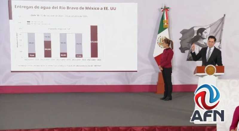 “Estoy convencida que, como en otras ocasiones, vamos a llegar a un acuerdo para beneficio de Estados Unidos y para beneficio de México; la voluntad nuestra, siempre en la defensa del derecho humano al agua, el uso agrícola y también buscando el beneficio para los agricultores de Estados Unidos", refirió Sheinbaum Pardo.