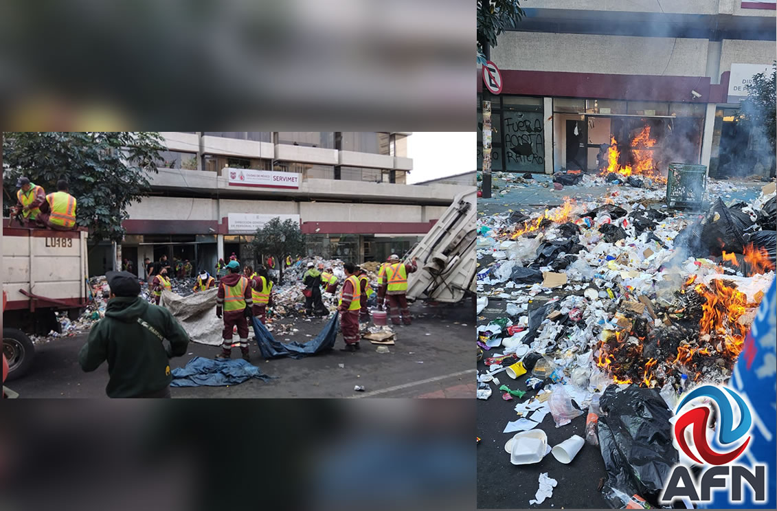 CIUDAD DE MÉXICO CDMX 12 DE DICIEMBRE DE 2025 (AFN).- Trabajadores del servicio de limpia de la Ciudad de México realizaron una protesta en la zona Centro, donde vaciaron camiones de basura y quemaron los desperdicios en plena vía pública como forma de presión ante la falta de respuestas a sus demandas laborales.