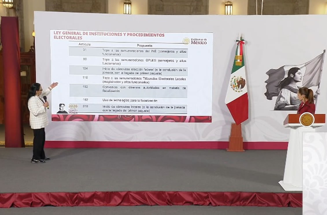 En su conferencia matutina, la mandataria expuso detalles de dicha propuesta tras el rechazo de la primera iniciativa de reforma electoral que presentó y desecharon los diputados federales -incluidos aliados de Morena, del Partido del Trabajo (PT) y del Verde Ecologista de México (PVEM)-, y cuya aprobación esta vez no necesita mayoría calificada.