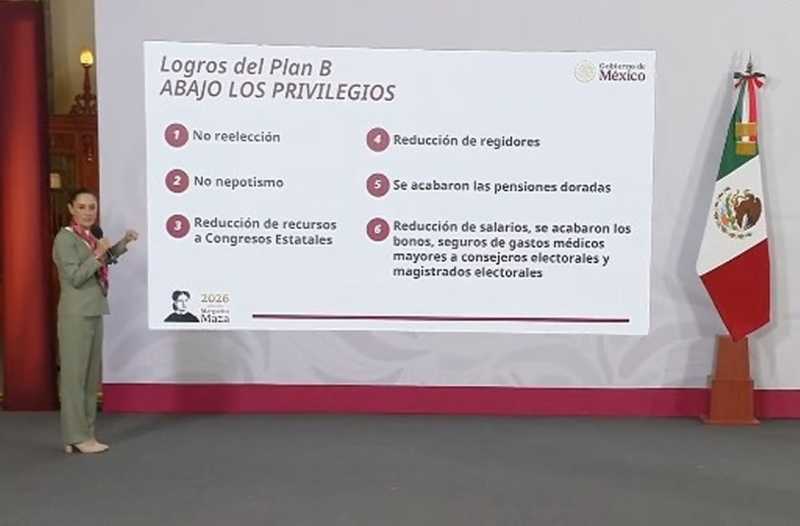 CIUDAD DE MÉXICO CDMX 10 DE ABRIL DE 2026 (AFN).- La presidenta Claudia Sheinbaum Pardo informó esta mañana que el "Plan B", que limita el número de regidores y pone freno a privilegios de ediles y legisladores locales, ya fue aprobado por los congresos de 20 entidades federativas, con lo que alcanza la mayoría requerida para su entrada en vigor.