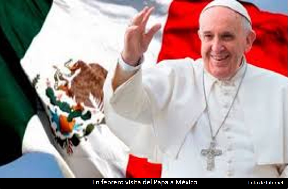 TIJUANA BC 12 DE DICIEMBRE DE 2015 (AFN).- En el marco de la conmemoración de las apariciones de la virgen de Guadalupe, el Papa Francisco anunció este sábado en una misa en honor de la “morenita del Tepeyac” que visitará México, en un viaje que tendrá lugar del 12 al 17 de febrero próximo, y que incluirá actos en los estados de México, Chiapas Michoacán y Chihuahua.