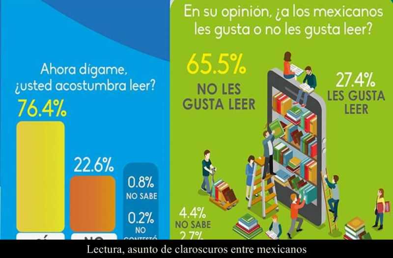 Estos datos contrapunteados surgen de una encuesta sobre los hábitos de lectura del mexicano, realizada por Gabinete de Comunicación Estratégica (GCE) y que revela que 27.1% de la gente achaca su lejanía de los libros a que no le inculcaron la lectura en la infancia.