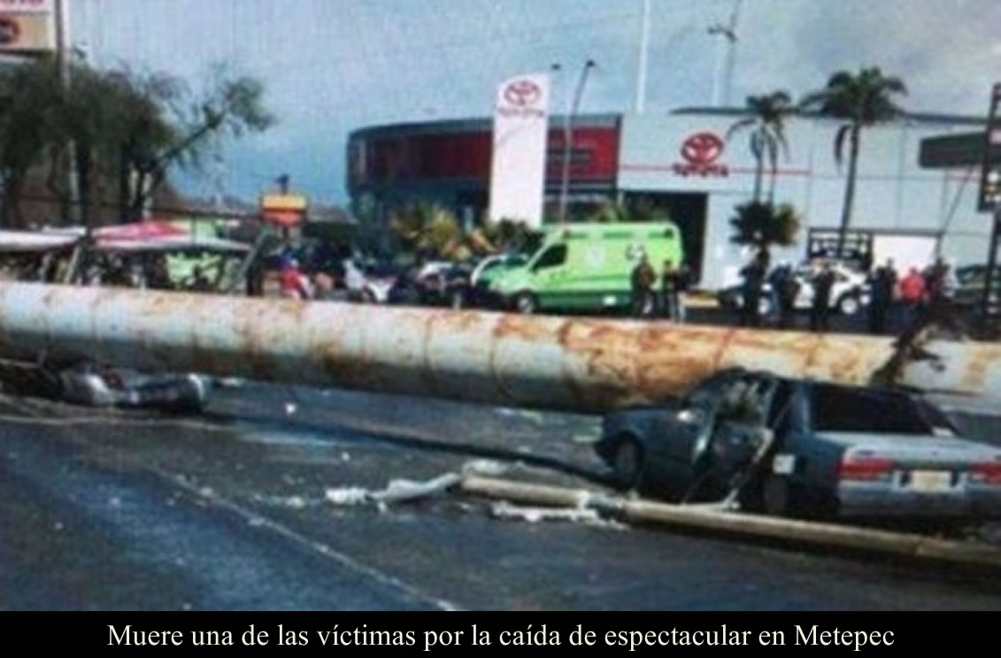MÉXICO DF 12 DE MARZO DE 2016 (LA SILLA ROTA).- Una persona que resultó herida por la caída de un anuncio espectacular en Metepec, Estado de México, murió este jueves.