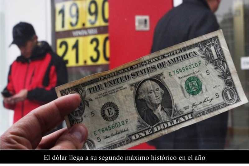 El dólar para operaciones al mayoreo se ubicó en 21.36 pesos por unidad, con datos de las 9:45 de la mañana; este precio significa un aumento superior al uno por ciento respecto al cierre del martes, y su máxima cotización histórica. En ventanilla bancaria, el billete verde también alcanza un nuevo máximo de todos los tiempos y se ofrece en 21.65 pesos por unidad, 25 centavos más que en la previa.