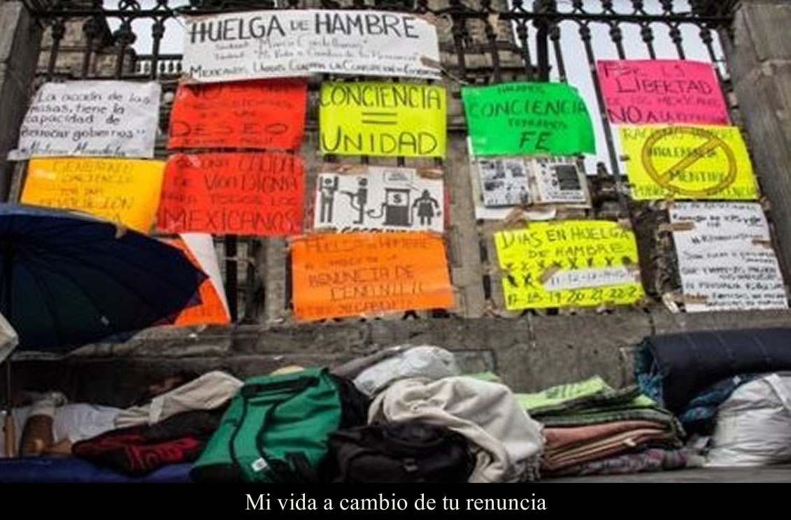 “Si no haría esto, no llegaría lejos. Cuando una persona no está dispuesta a llegar a sus límites no logra nada. No hay otra opción. Mi objetivo, además de la renuncia de Peña Nieto, es meter a todos los funcionarios que nos han robado a la cárcel”.
