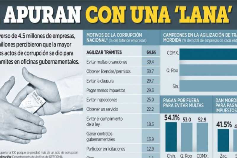 *.- En 2016, diversas instancias del sector público cobraron mil 600 millones de pesos en mordidas al sector empresarial.