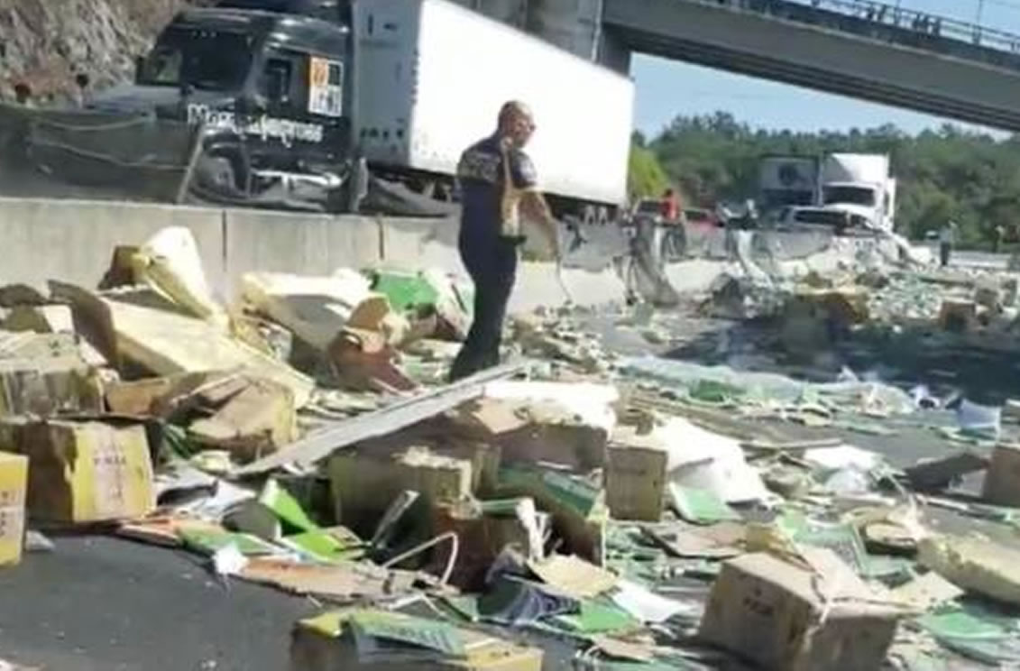 Algunas personas se acercaron y tomaron unas cajas, aunque la mayoría fue indiferente a la carga y siguió su camino sin tomarlo, como suele ocurrir cuando vuelca algún tráiler cargado con mercancía.