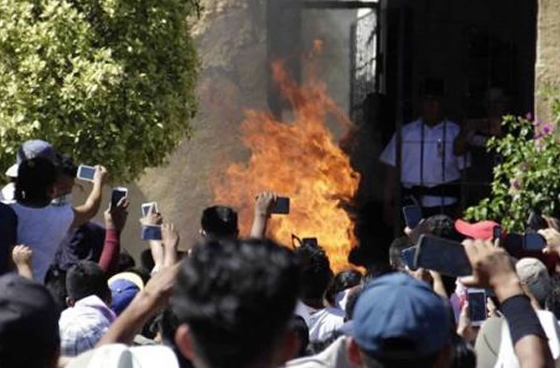 Ambos campesinos fueron llevados a la comandancia municipal, donde la misma multitud fue a sacarlos con palas y picos, los amarraron con una soga de los pies, los arrastraron hasta la plaza pública, donde los golpearon y le prendieron fuego.
