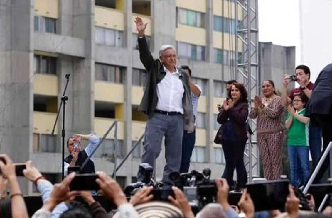 El presidente electo estuvo acompañado de la próxima jefa de Gobierno de la Ciudad, Claudia Sheinbaum y los morenistas Mario Delgado, Martí Batres y Dolores Padierna.