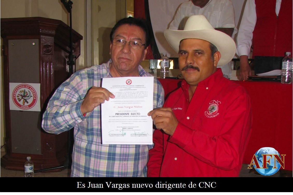 ENSENADA BC 22 DE NOVIEMBRE DE 2015 (AFN).- Por unanimidad de votos se eligió a Juan Vargas Núñez, como presidente del comité municipal campesino (CNC), del municipio de Ensenada.