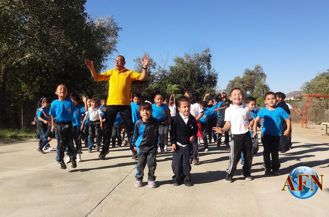 TECATE BC 7 DE NOVIEMBRE DE 2017 (AFN).- Con el propósito de impulsar la actividad física en los niños en etapa escolar, promotores del Instituto Municipal del Deporte (IMDETE) impartieron en el plantel una rutina de ejercicio, en la que participaron los niños de la escuela Primaria Emiliano Zapata, así como de los jardines de niños Héctor Terán Terán y Bertha Von Glumer.