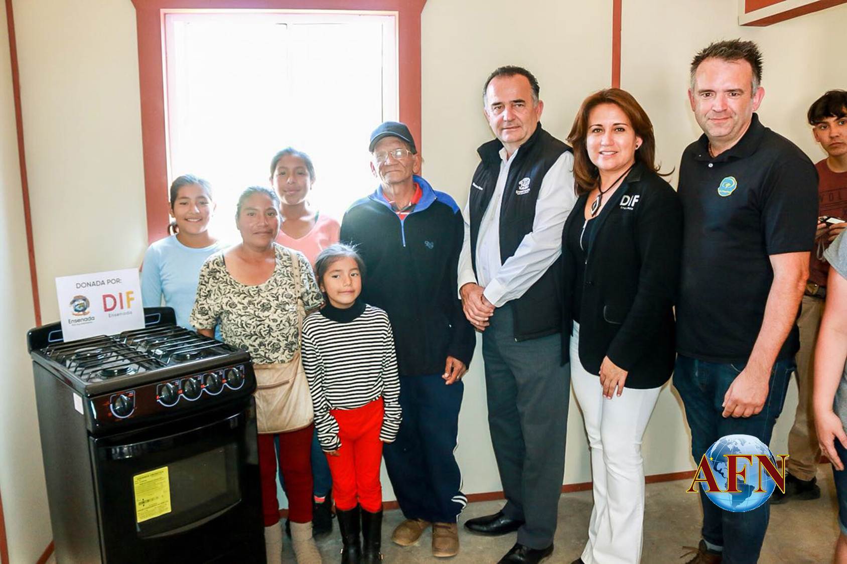 Durante la entrega simbólica, el Sistema Nacional para el Desarrollo Integral de la Familia (DIF) Ensenada obsequió dos estufas para dos familias beneficiadas y posteriormente el presidente municipal, Marco Novelo Osuna, otorgó las llaves a las cabezas de familia de lo que será su nuevo hogar.